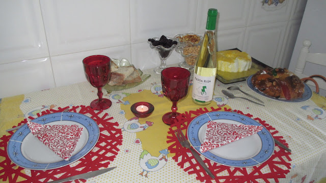 Já a noite ia longa quando em cima da mesa da cozinha foi posto um velho lençol, canecas, pincéis e tintas para cerâmica.
